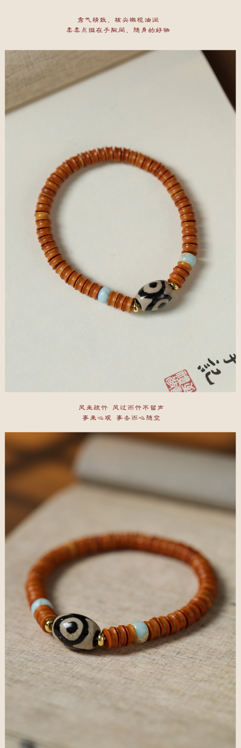 China-Chic Wenyi Sen Suya Hand String Olive Stone Bamboo Knot Single Loop Tibetan Agate Sky Pearl Hand String for Men and Women