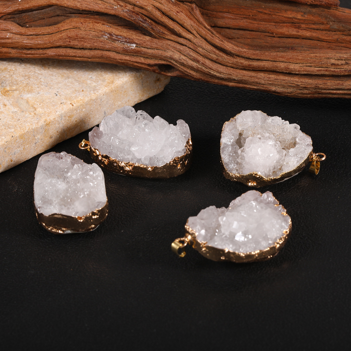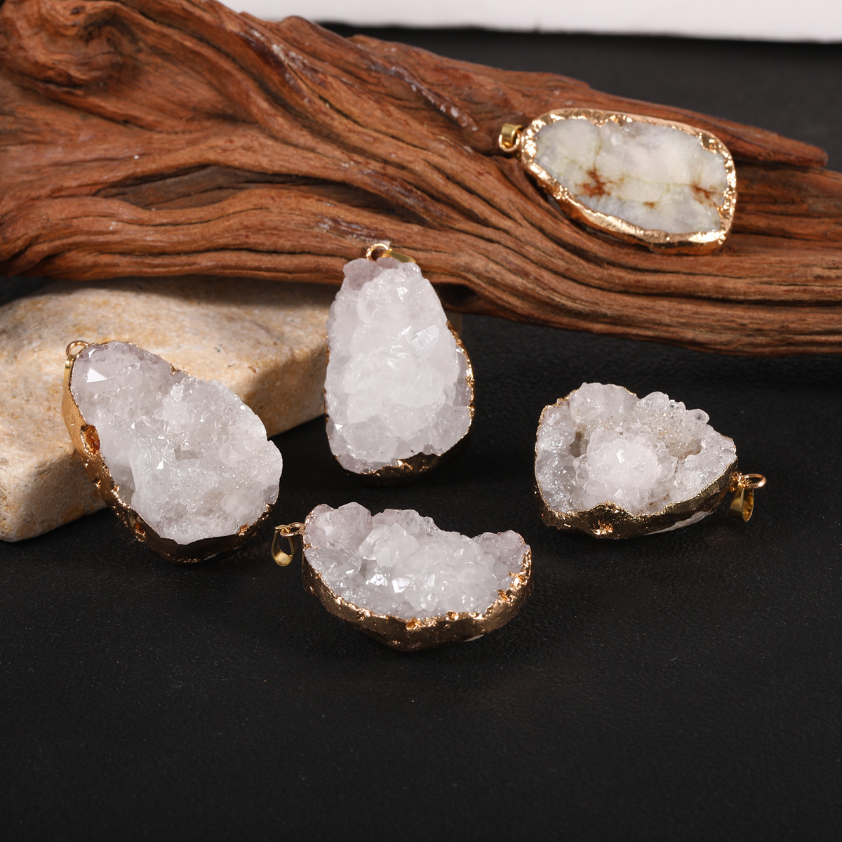 Cross border electroplated raw stone white crystal pendant
