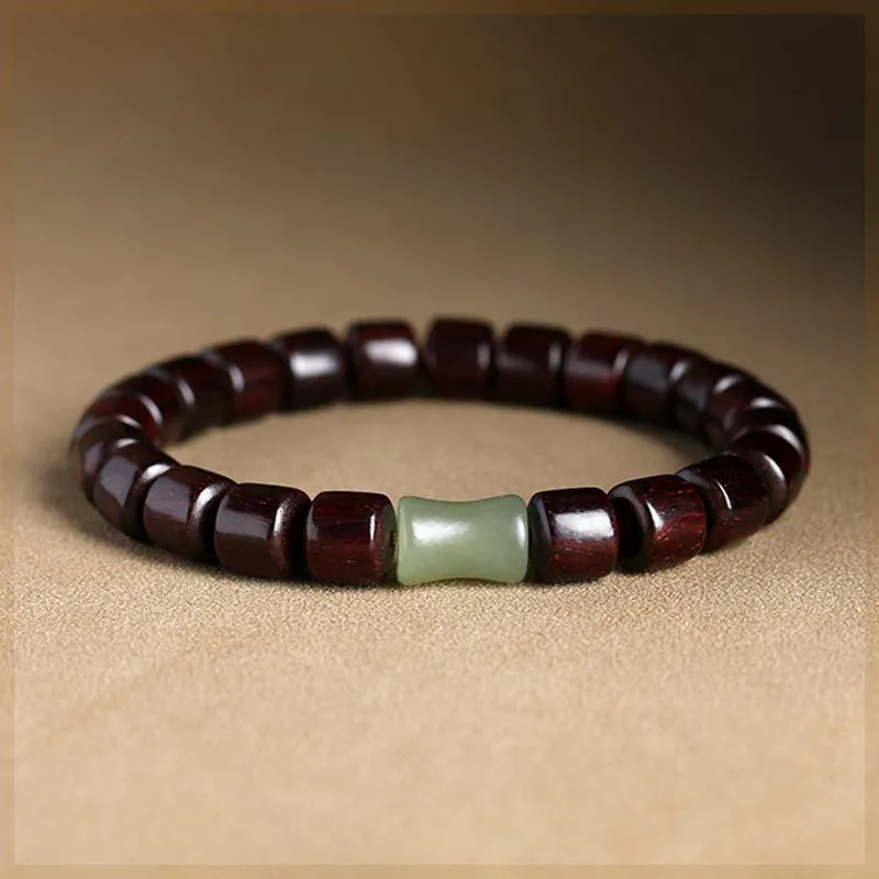 Natural Sandalwood Bracelet, Step-by-Step Rise, Unisex, Cultural Relics, Buddhist Rosary, Dongling Jade, Bamboo Joint Beads, Single Circle