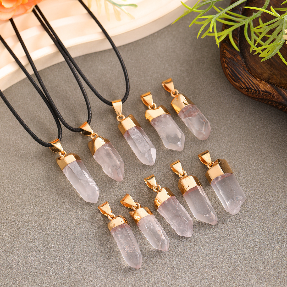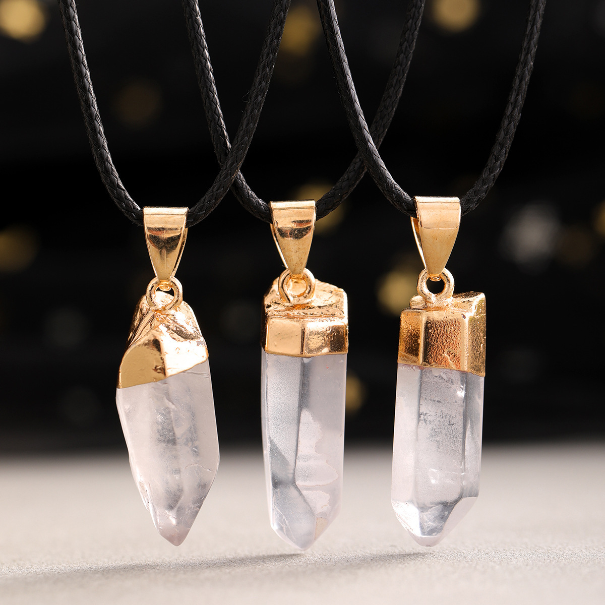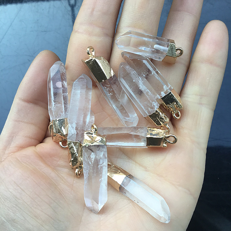 Natural Stone White Crystal Irregular Hexagonal Column Pendant Pendant