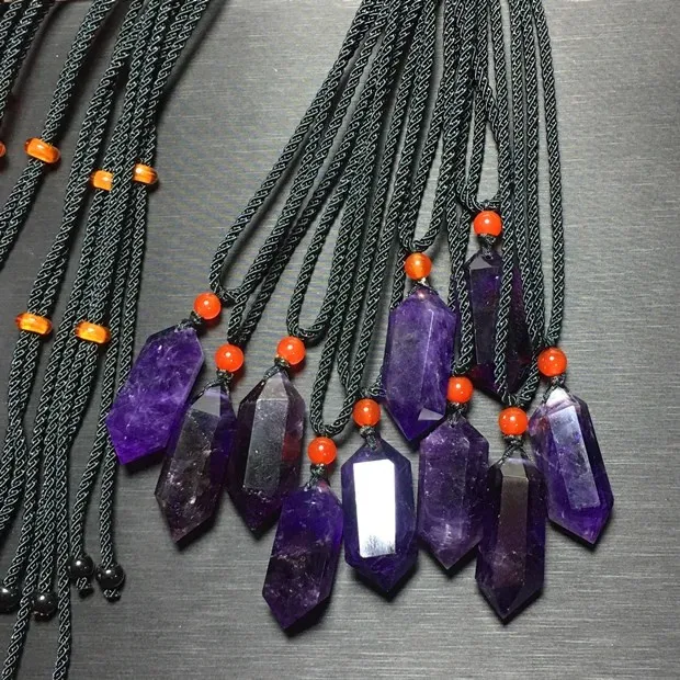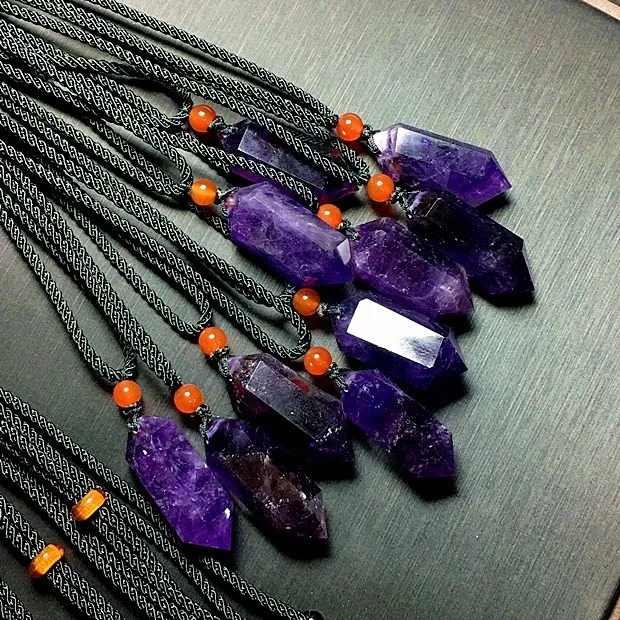 Shining Diamond Crystal Column Purple Crystal Spirit Pendant Hexagonal Prism